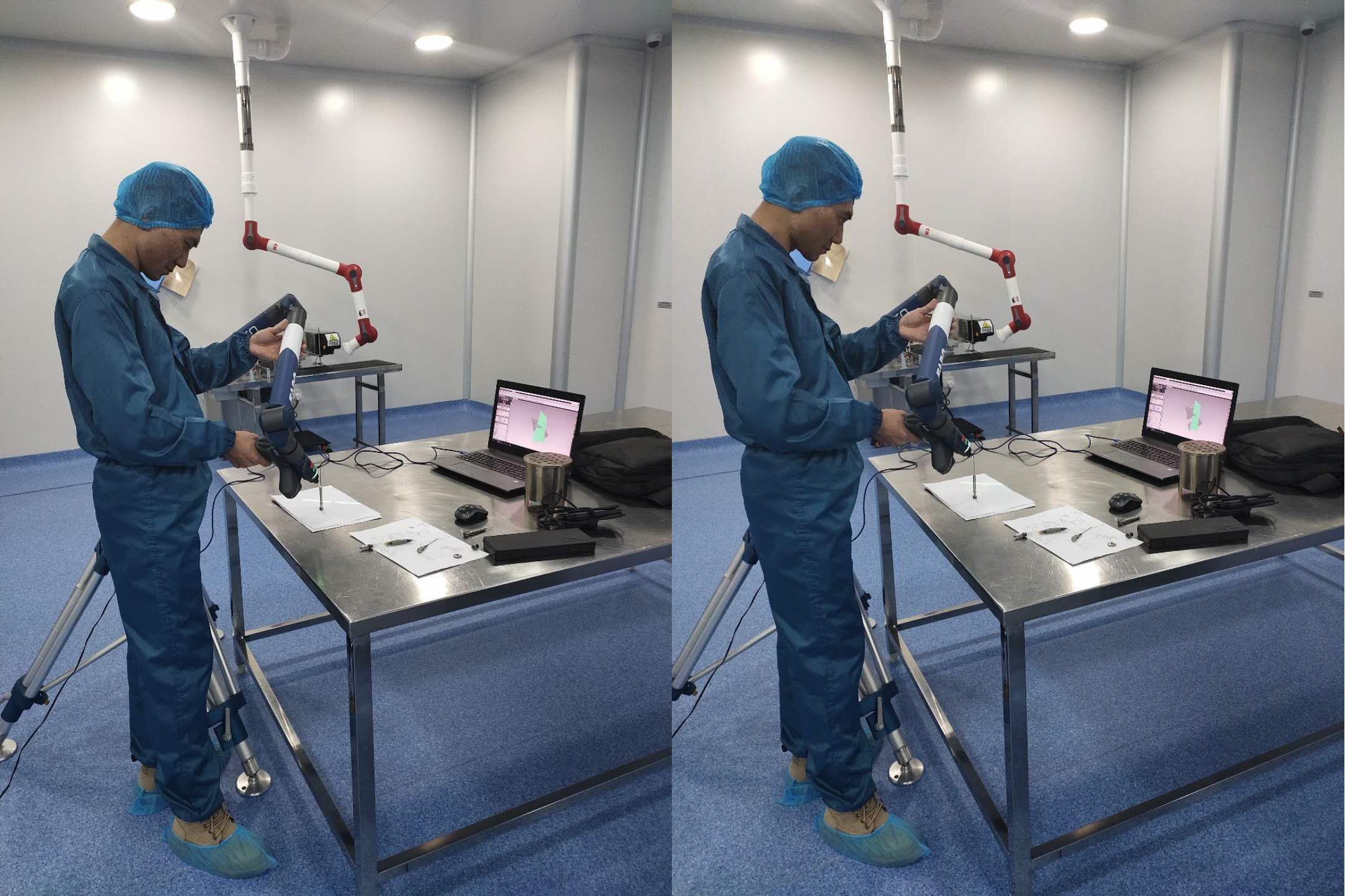 本次項(xiàng)目客戶(hù)為某制藥廠,需要對(duì)針頭、支架、接頭等醫(yī)療器械進(jìn)行3D掃描和逆向建模,現(xiàn)場(chǎng)掃描工作在無(wú)塵實(shí)驗(yàn)室中進(jìn)行。